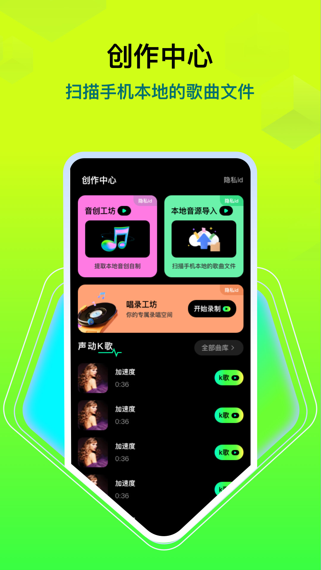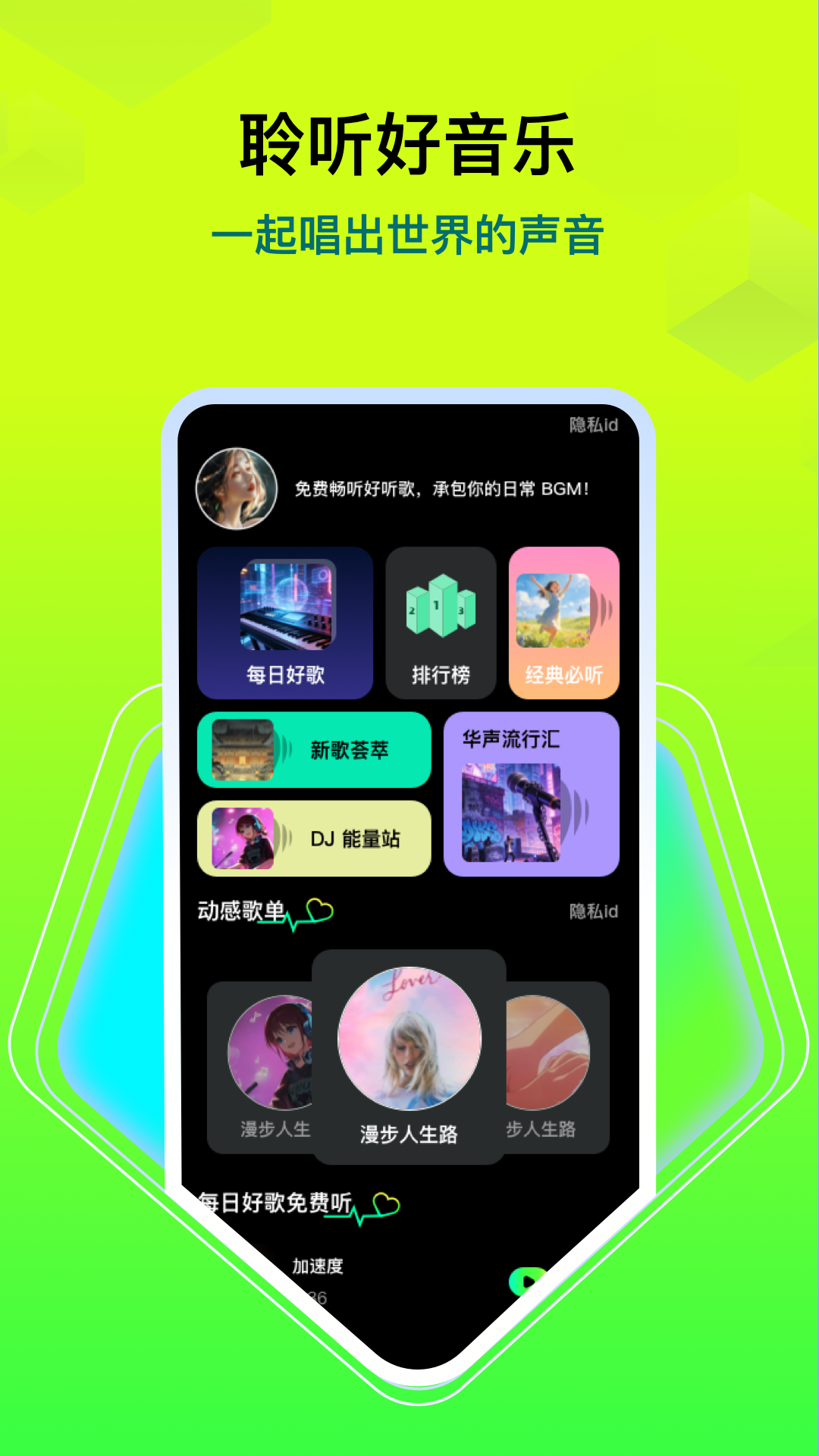 本应用搭载一站式音乐娱乐功能,满足你全场景听歌与 K 歌需求: 支持音乐播放,内置丰富动感歌单,随时随地畅享高品质旋律;